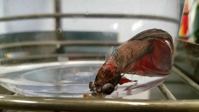 Eyewitnesses discovered that betta fish at Petco were visibly ailing and suffering from fin rot, swim bladder disorders, and other critical medical conditions. Yet instead of taking them to a veterinarian, employees simply guessed at diagnoses or left them to suffer. One Petco employee remarked that an ailing betta fish was likely forgotten about and was now “on his way to die,” even though the fish’s condition “could’ve been treated.” Another betta who had apparently arrived at a Chapel Hill, North Carolina, store floating on his side because of a swim bladder issue was left to languish that way for months. Petco’s “solution” was to sell the fish at a discount.