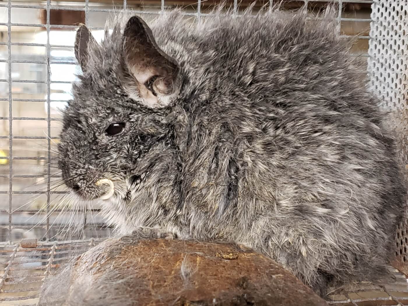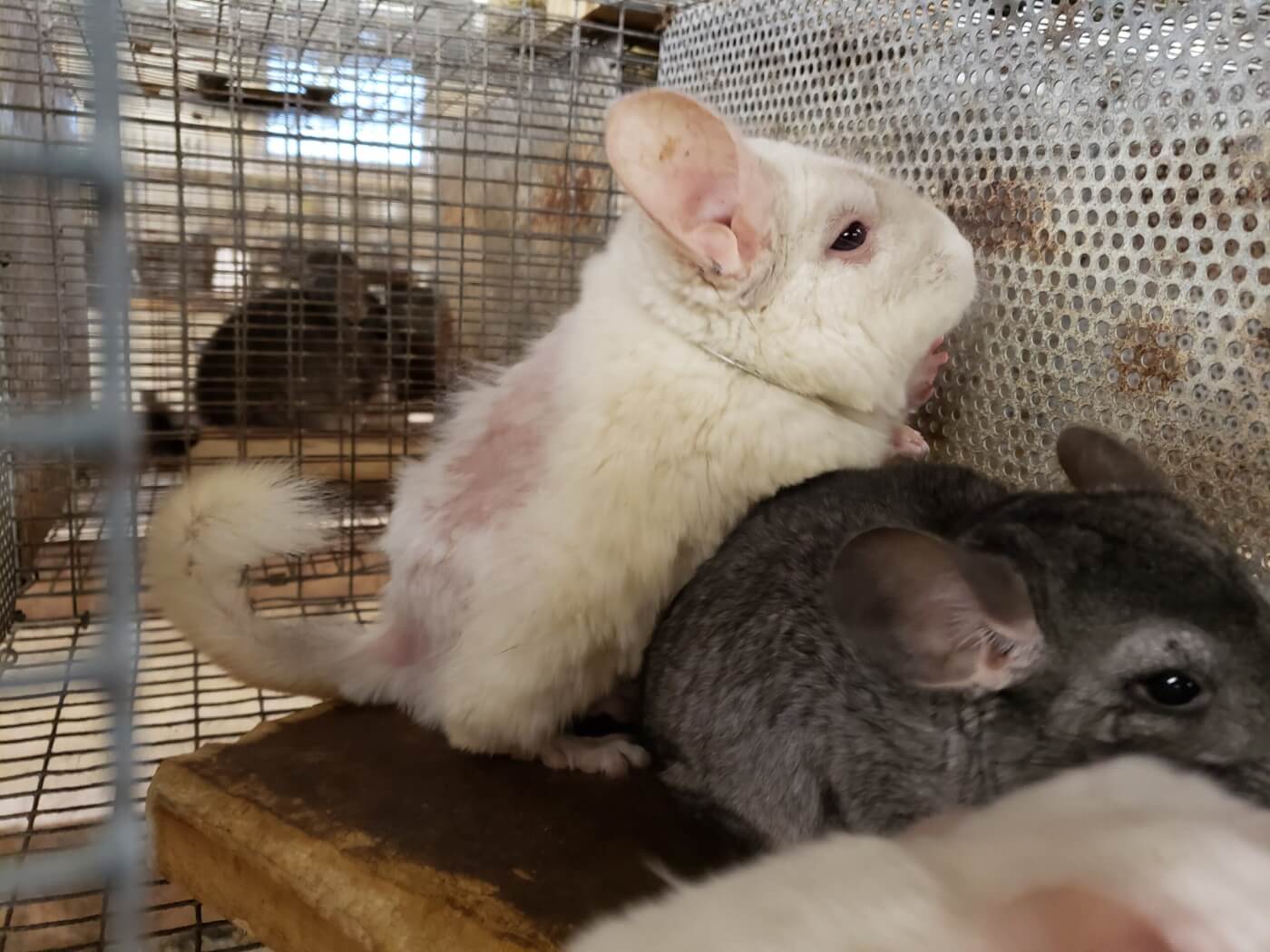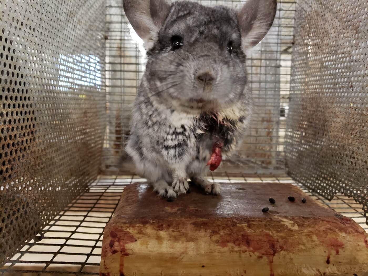 The unnatural, severely stressful living conditions led chinchillas to chew on their own and other chinchillas’ fur.