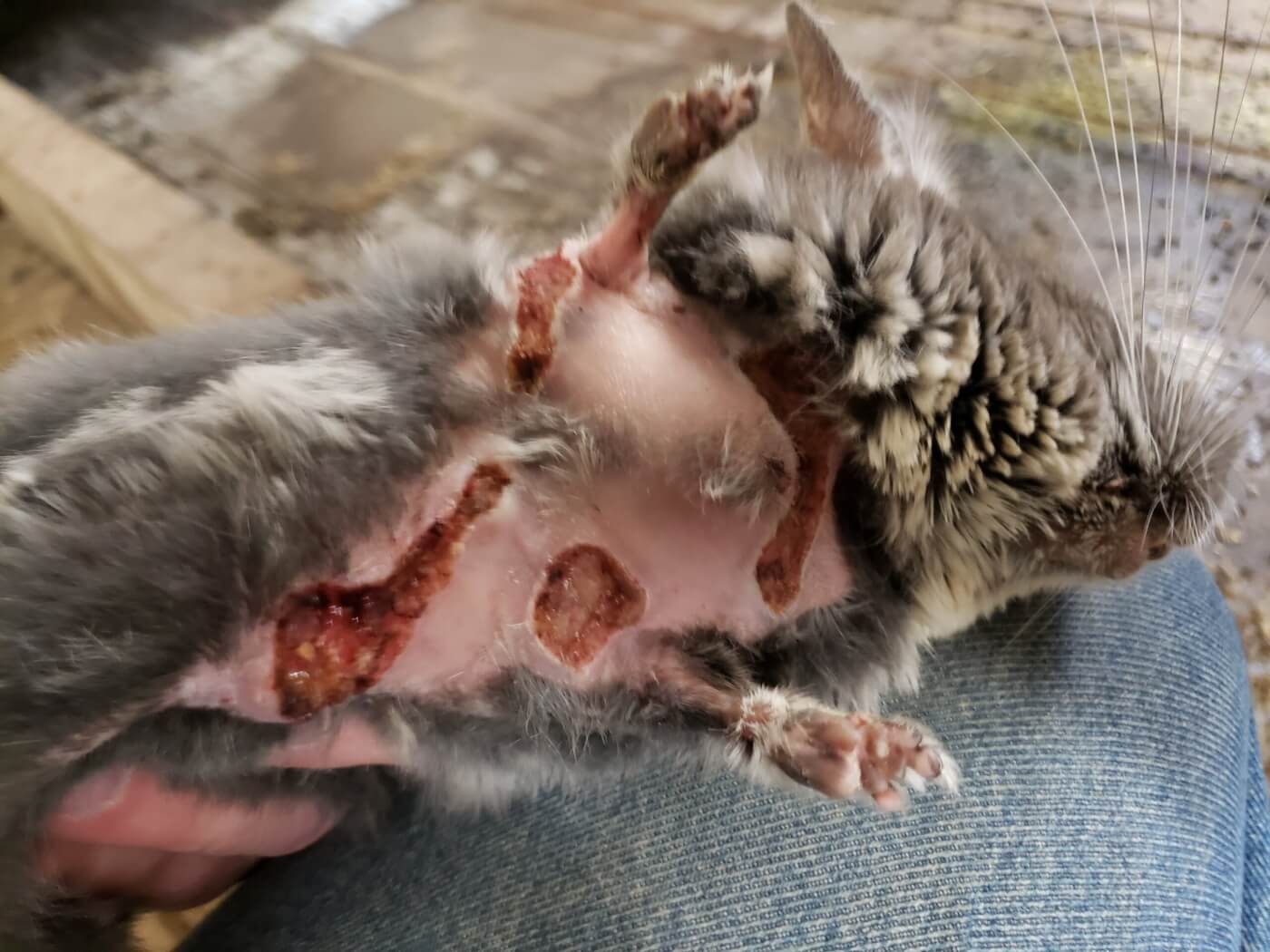 This chinchilla suffered for weeks with a raw, open wound at the base of the tail and eventually died without any veterinary care.