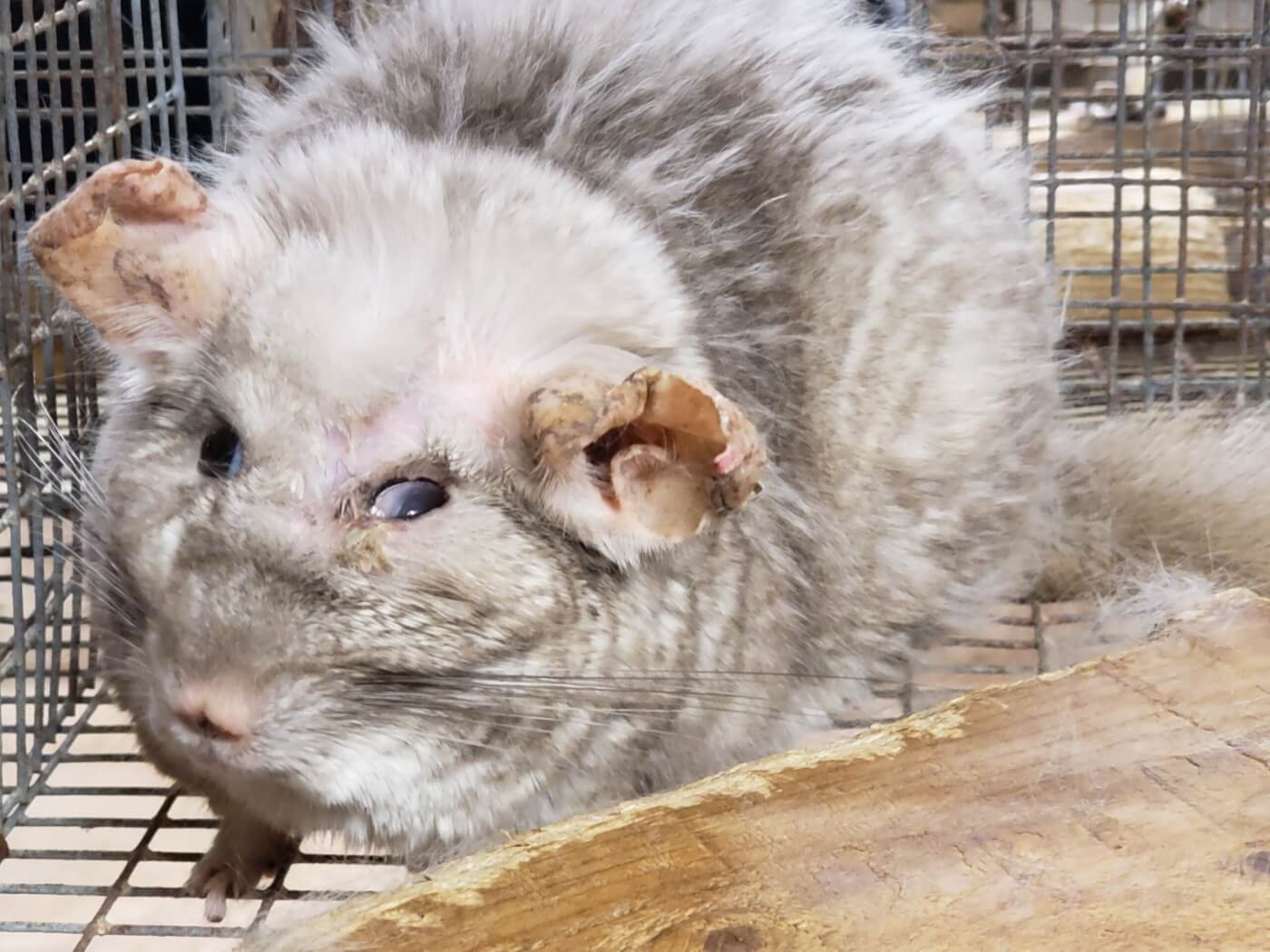 Deprived of everything meaningful to them, the chinchillas in these highly stressful, inhumane conditions mutilated themselves and their cagemates, which is a sign of severe distress. One young animal’s ears were nearly chewed off.