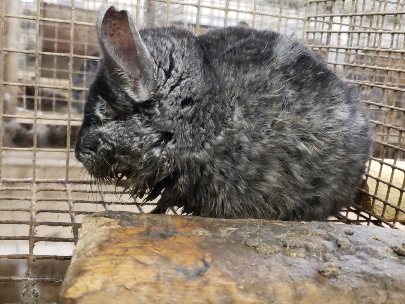 This seemingly elderly, ailing chinchilla’s left eye pointed off to the side and had apparently gone blind.