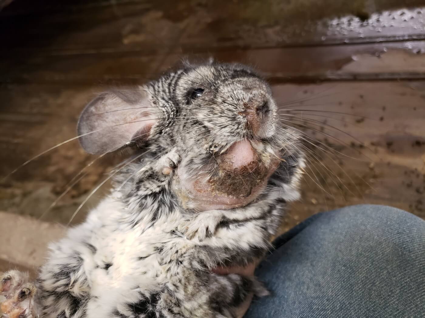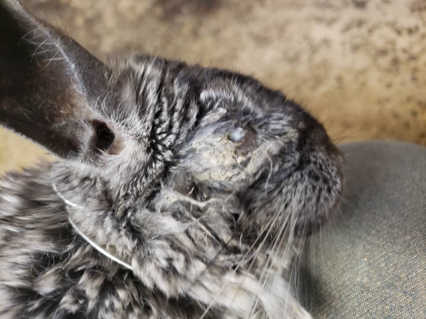 This chinchilla’s eye was sealed shut with a discharge, and his matted fur smelled putrid.