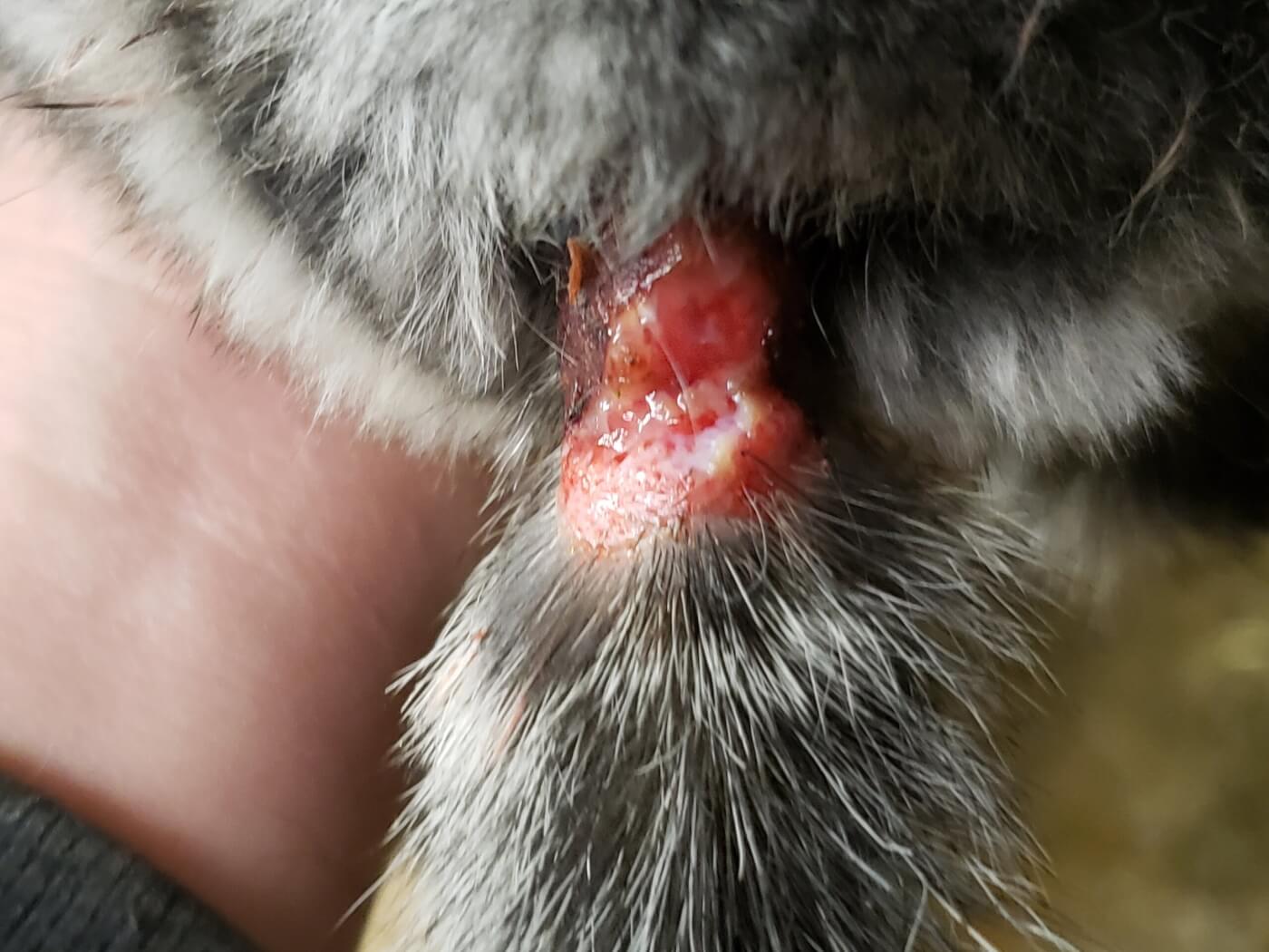 Tina’s mammary tissue was infected and left untreated for so long that it eventually burst, leaving the damaged tissue raw and exposed to contaminants.