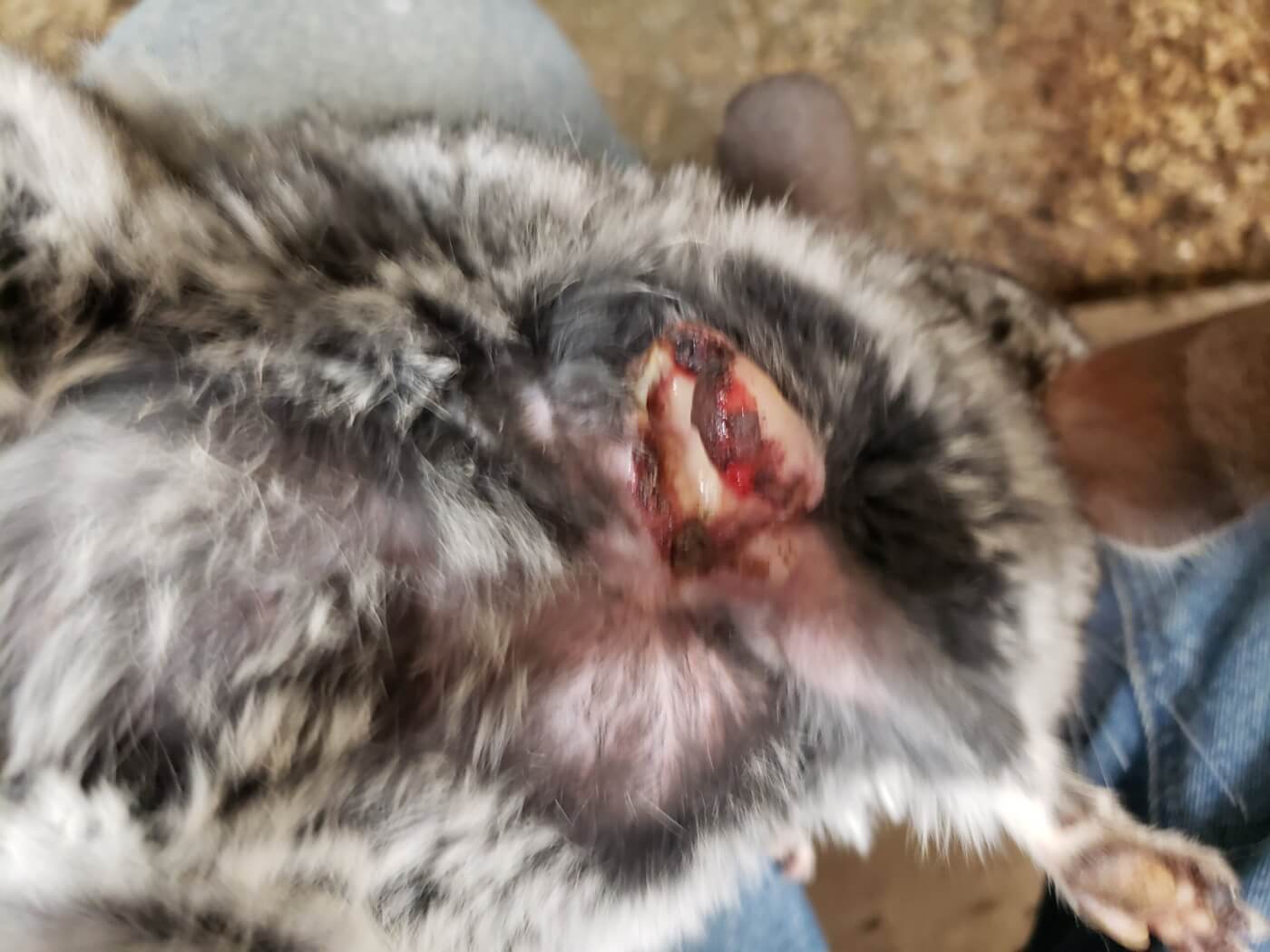 Yet another chinchilla had a raw, bloody wound at the base of his tail. MCR’s owner left him without veterinary care for weeks, until he finally died.