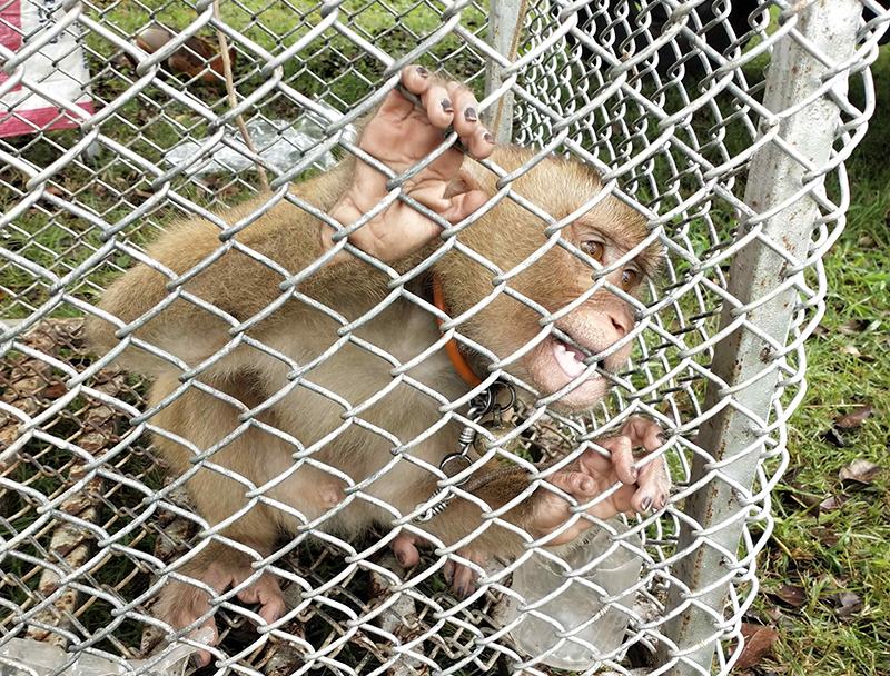It shouldn’t happen to monkeys, but it does. PETA Asia investigators visited coconut farms in Thailand and found monkeys with heavy metal collars fastened around their necks, chained and forced to spend long hours climbing trees and picking coconuts, including for one of Thailand’s major coconut milk producers, Chaokoh. In nature, infant pigtail macaques—one of coconut growers’ favorite targets to capture—would be nursing, learning from their mothers how to groom, kissing, and beginning to explore their surroundings. On coconut farms, the animals are trained to work through abuse and fear and kept chained in trash-strewn dirt patches at night, even though humane harvest methods are readily available.