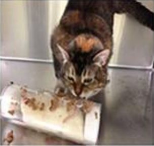 In yet another experiment, she stuffed rats into plastic, wedge-shaped cones so small that they were unable to move. She then placed them inside a Plexiglas enclosure, smeared cat food on top of it, and placed that enclosure inside a tiny metal cage with an adult cat for one hour. This was so that the rats would experience "direct cat gustatory activity."