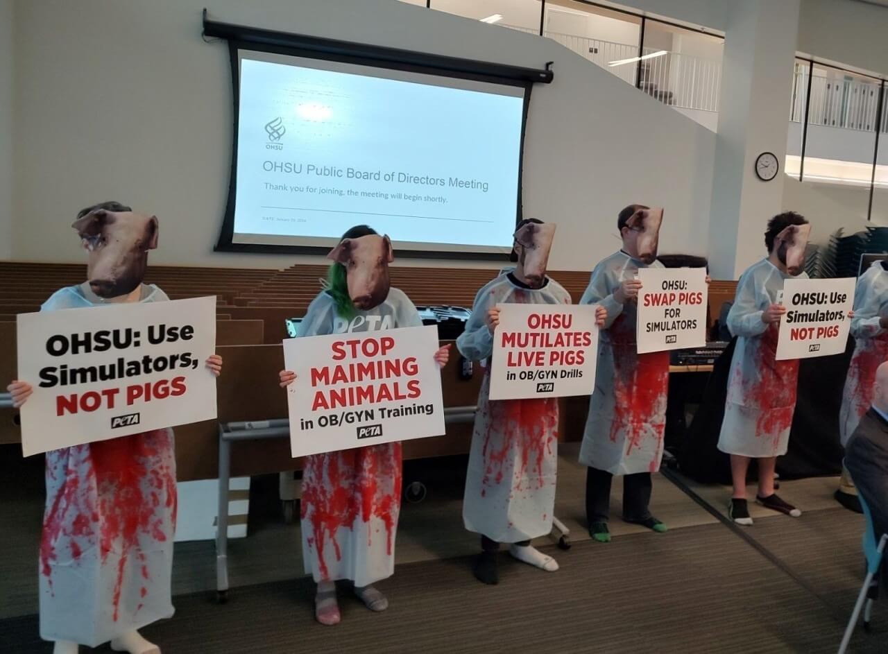 - In the wake of OHSU’s cancellation of its pig lab in 2024 due to its acknowledgement of “decreased enthusiasm from the Chief resident class” for this cruelty, please adopt a public policy permanently banning the use of live animals in OHSU’s OB/GYN physician residency training program.