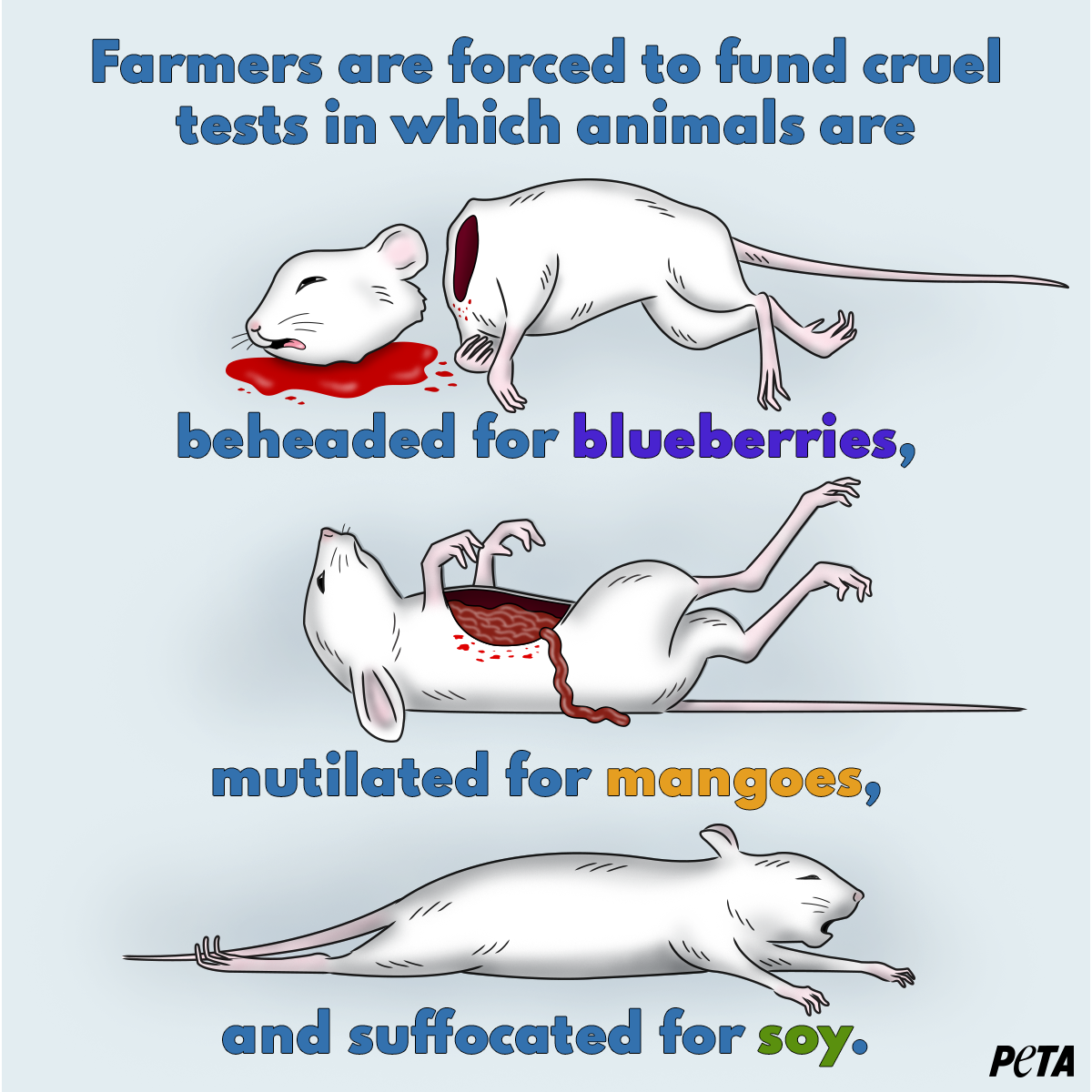 The fees, in part, bankroll gruesome animal testing. The 12 promotion boards that require the fees—including the blueberry, mango, and mushroom boards—use the results in attempts to bolster human health claims for agricultural products. It’s marketing, plain and simple. And it’s entirely unnecessary.