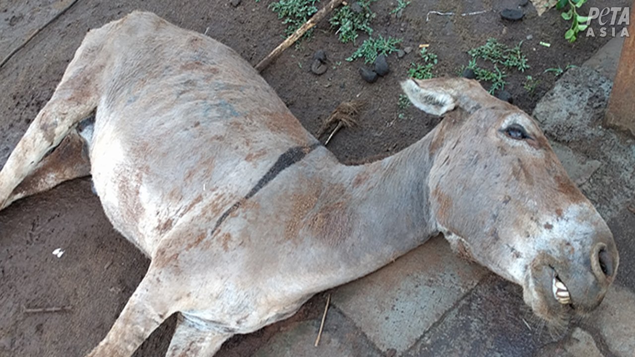 Donkeys are affectionate, inquisitive, and social creatures, yet PETA Asia investigators found terrified donkeys—some only months old—who had been bashed on the head with a sledgehammer. In addition, their throats had been slit and they had been left to die so that their skin could be boiled down for ejiao, a gelatin used in traditional Chinese medicine, snacks, and cosmetics.