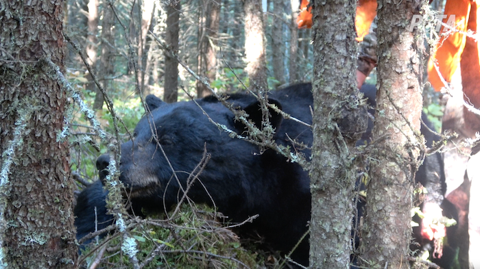 A shocking PETA investigation shows hunters in Canada setting out drums of cookies, bread, and sticky, greasy food before shooting hungry bears, lured by the smell, with crossbows. Animals who have been shot often run for their lives. As many as one bear in seven escapes wounded and endures a slow, painful death from blood loss or starvation.