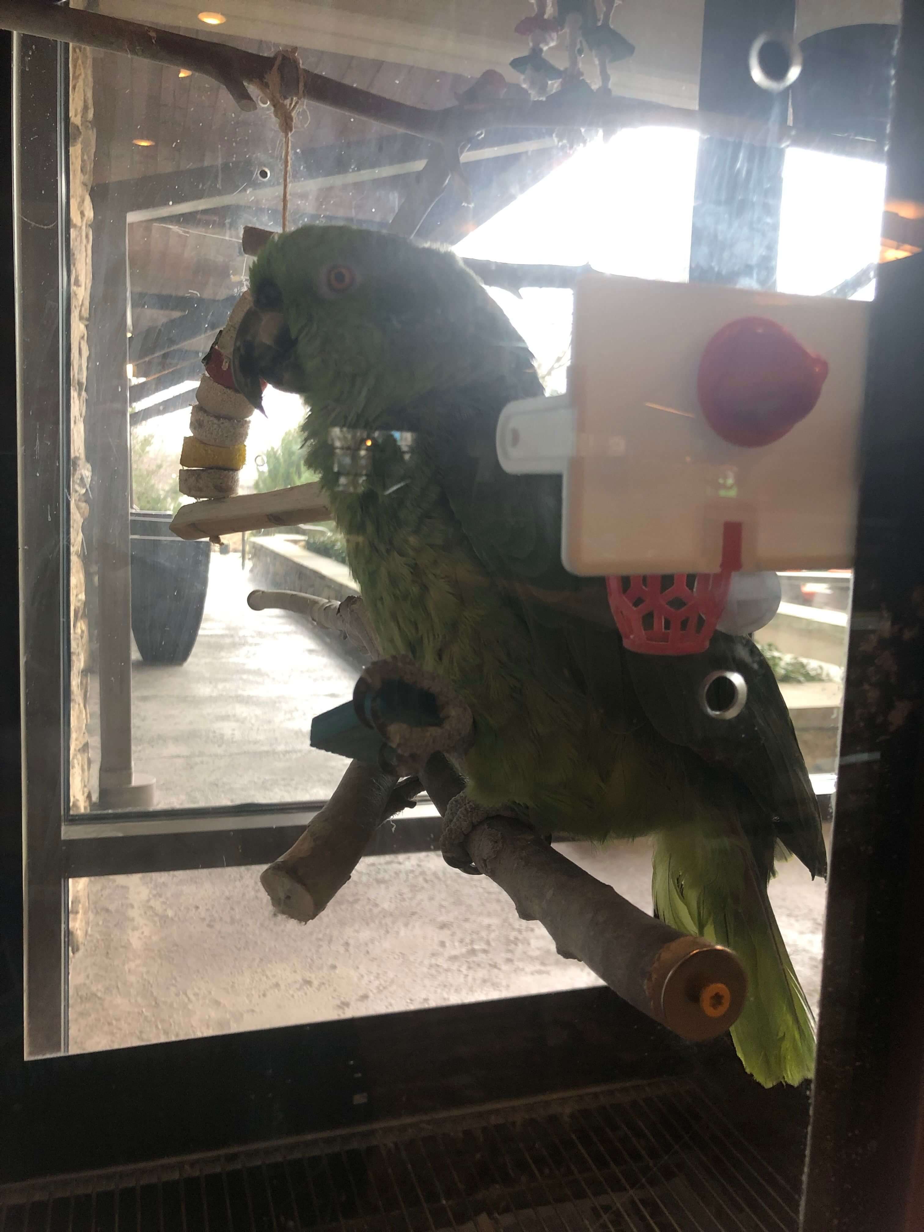 Courtyard Pigeon Forge keeps an Amazon parrot named LuLu in solitary confinement inside a tiny cage in its lobby. Amazon parrots live in large social groups in nature, but this hotel denies LuLu the opportunity to have the company of her own species, which deprives her of the innate need for social interactions with other birds. Frustration and loneliness resulting from tiny cages and solitary confinement often leads birds to engage in aggressive and self-destructive behaviors, including pulling out their own feathers and mutilating their own skin.