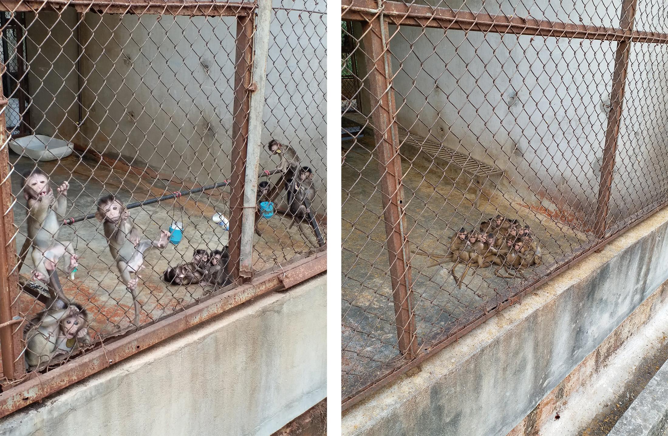 Infant long-tailed macaques ripped from their mothers and kept in filthy concrete-block enclosures at a Cambodian monkey farm.