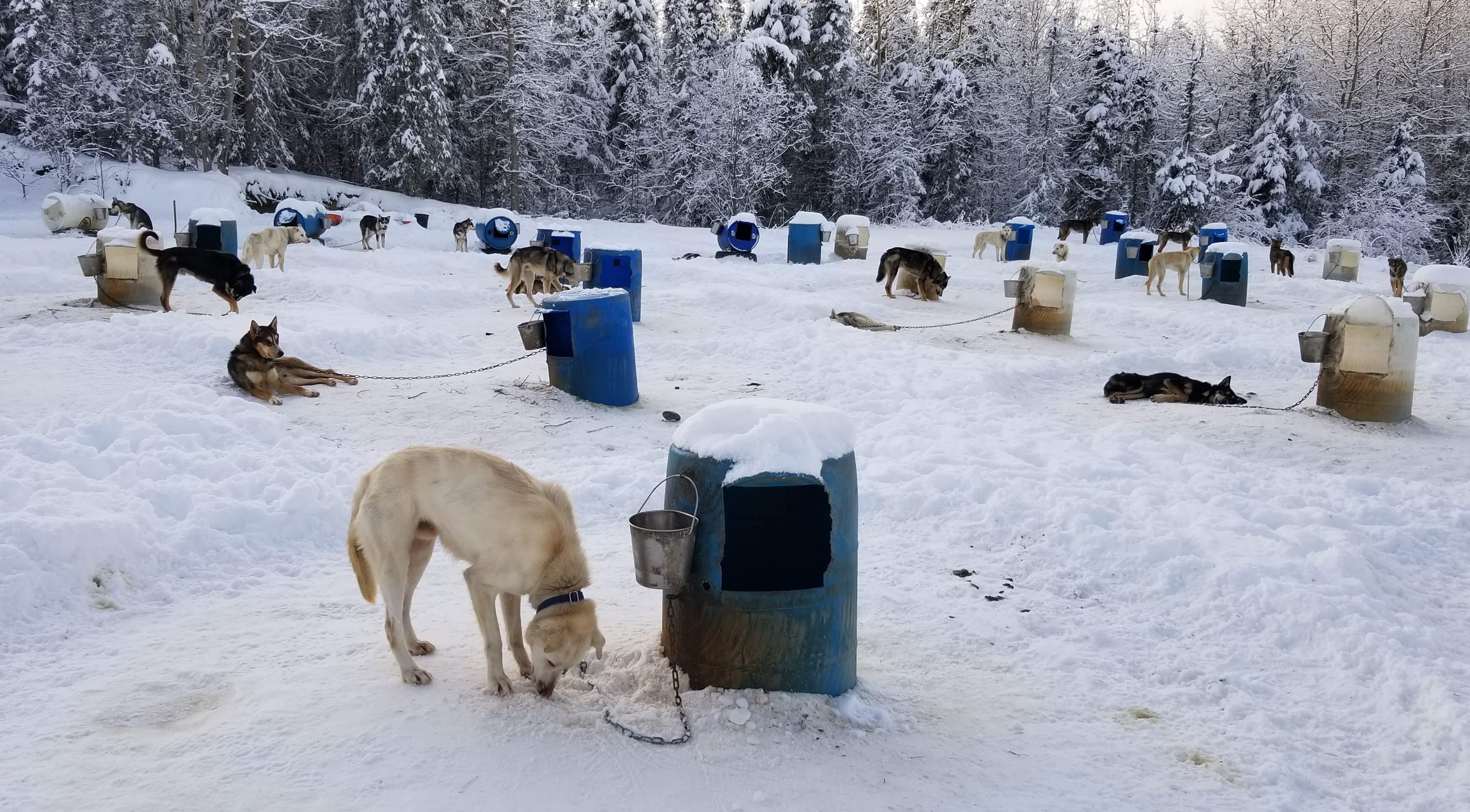 In late 2018 and early 2019, a PETA eyewitness worked in Alaska's dog sledding industry. He found dogs denied veterinary care for painful injuries, kept constantly chained next to dilapidated boxes and plastic barrels in the bitter cold and biting wind, and exhausted, dehydrated dogs forced to run hundreds of miles.