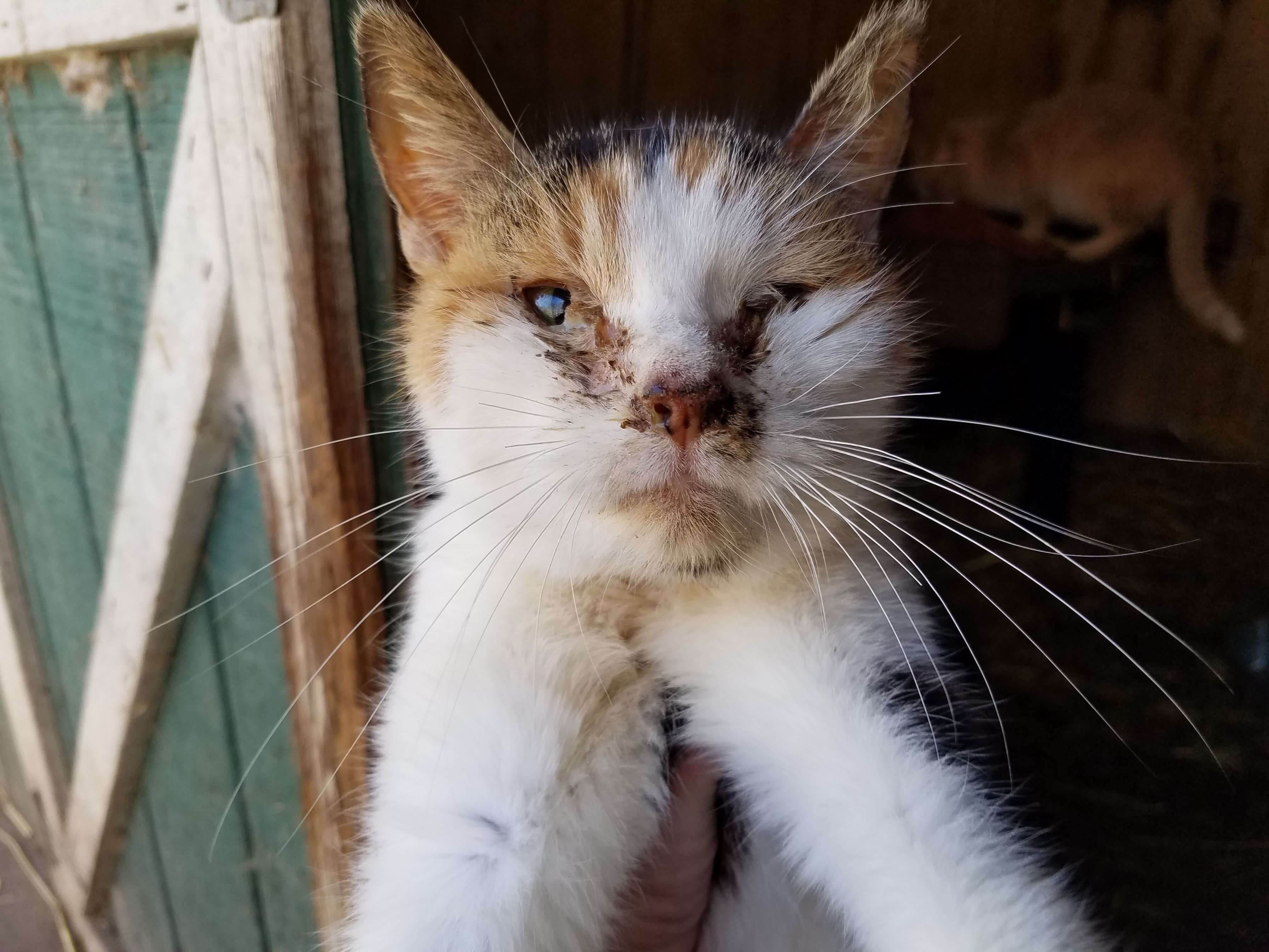 Local residents had been raising concerns about the abysmal conditions for animals at Isaiah 11 for more than a year, but authorities failed to take any meaningful action until after PETA had investigated. Only then did the Kosciusko County Sheriff’s Office remove the surviving animals from the site, with our help. Cats the sheriff’s office and PETA removed from the property were suffering from serious health issues, including upper respiratory and ear infections, an injured eye, diarrhea, parasites, muscle wasting, emaciation, and chronic, painful wounds. Some were dehydrated, and nearly all of them were ravenous.